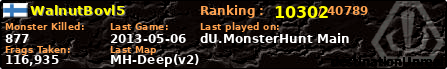 WalnutBovl5 | | PlayerID: | 13195 | | Overall MHT: | 116,935 | | Overall Deaths: | 117 | | Overall Suicides: | 0 | | Overall TeamKills: | 1 | | Overall Distance traveled: | 77km | | Overall Time Spend on Server: | 00days 05h 27m 39s | | Maps Played: | 22 | | Firstgame: | 2013-04-03 10:45:39 | | LastGame: | 2013-05-06 11:52:44 | | Player Ranking Place: | 10302 | | Used Playernames: | WalnutBovl5 TOV96