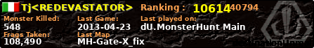 | Server | Map | LastGame | Score | Teamscore | Monsterleft | Deaths | Suicides | TKs | Distance | Playtime | |