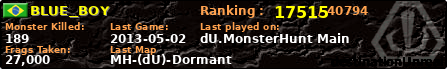 ![]() | MH-(dU)-Dormant | 2013-05-02 01:54:41 | 5,435 | 42976 | 28 | 9 | 0 | 0 | 7,76km | 02:03:38 |
