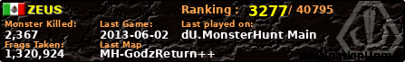 ZEUS | | PlayerID: | 13513 | | Overall MHT: | 1,320,924 | | Overall Deaths: | 182 | | Overall Suicides: | 0 | | Overall TeamKills: | 2 | | Overall Distance traveled: | 188km | | Overall Time Spend on Server: | 00days 18h 26m 50s | | Maps Played: | 47 | | Firstgame: | 2013-05-16 02:42:13 | | LastGame: | 2013-06-02 02:52:03 | | Player Ranking Place: | 3277 | | Used Playernames: | ZEUS