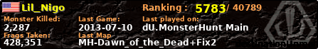 Lil_Nigo | | PlayerID: | 13595 | | Overall MHT: | 428,351 | | Overall Deaths: | 299 | | Overall Suicides: | 9 | | Overall TeamKills: | 1 | | Overall Distance traveled: | 142km | | Overall Time Spend on Server: | 00days 11h 12m 11s | | Maps Played: | 42 | | Firstgame: | 2013-05-26 20:25:16 | | LastGame: | 2013-07-10 13:49:24 | | Player Ranking Place: | 5783 | | Used Playernames: | Lil_Nigo Little_nigo