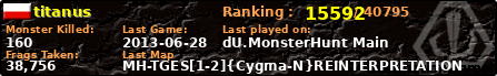 | Server | Map | LastGame | Score | Teamscore | Monsterleft | Deaths | Suicides | TKs | Distance | Playtime | |