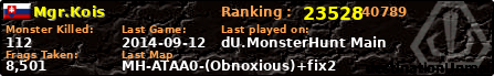 | Server | Map | LastGame | Score | Teamscore | Monsterleft | Deaths | Suicides | TKs | Distance | Playtime | |