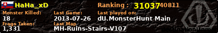 | Server | Map | LastGame | Score | Teamscore | Monsterleft | Deaths | Suicides | TKs | Distance | Playtime | |