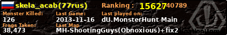 | Server | Map | LastGame | Score | Teamscore | Monsterleft | Deaths | Suicides | TKs | Distance | Playtime | |