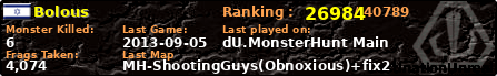 | Server | Map | LastGame | Score | Teamscore | Monsterleft | Deaths | Suicides | TKs | Distance | Playtime | |