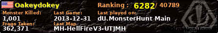 Oakeydokey | | PlayerID: | 14939 | | Overall MHT: | 362,371 | | Overall Deaths: | 247 | | Overall Suicides: | 0 | | Overall TeamKills: | 2 | | Overall Distance traveled: | 165km | | Overall Time Spend on Server: | 00days 10h 54m 38s | | Maps Played: | 36 | | Firstgame: | 2013-10-17 06:10:45 | | LastGame: | 2013-12-31 00:50:21 | | Player Ranking Place: | 6282 | | Used Playernames: | Oakeydokey !)1(k4