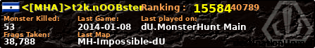 | Server | Map | LastGame | Score | Teamscore | Monsterleft | Deaths | Suicides | TKs | Distance | Playtime | |
