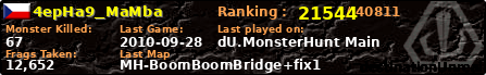 | Server | Map | LastGame | Score | Teamscore | Monsterleft | Deaths | Suicides | TKs | Distance | Playtime | |