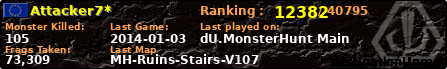 | Server | Map | LastGame | Score | Teamscore | Monsterleft | Deaths | Suicides | TKs | Distance | Playtime | |