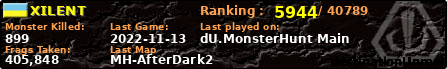 XILENT | | PlayerID: | 1591 | | Overall MHT: | 405,848 | | Overall Deaths: | 173 | | Overall Suicides: | 8 | | Overall TeamKills: | 0 | | Overall Distance traveled: | 136km | | Overall Time Spend on Server: | 00days 09h 39m 02s | | Maps Played: | 37 | | Firstgame: | 2010-09-29 22:33:16 | | LastGame: | 2022-11-13 21:48:14 | | Player Ranking Place: | 5944 | | Used Playernames: | XILENT Serega =[QoS]= Rubidubidu PegBaH 4321