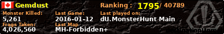 Gemdust | | PlayerID: | 15932 | | Overall MHT: | 4,026,560 | | Overall Deaths: | 209 | | Overall Suicides: | 0 | | Overall TeamKills: | 2 | | Overall Distance traveled: | 281km | | Overall Time Spend on Server: | 00days 22h 30m 27s | | Maps Played: | 95 | | Firstgame: | 2014-01-17 03:19:09 | | LastGame: | 2016-01-12 01:15:56 | | Player Ranking Place: | 1795 | | Used Playernames: | Gemdust Undine
