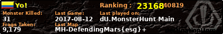 | Server | Map | LastGame | Score | Teamscore | Monsterleft | Deaths | Suicides | TKs | Distance | Playtime | |