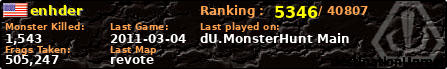 enhder | | PlayerID: | 1676 | | Overall MHT: | 505,247 | | Overall Deaths: | 80 | | Overall Suicides: | 2 | | Overall TeamKills: | 0 | | Overall Distance traveled: | 81km | | Overall Time Spend on Server: | 00days 05h 28m 15s | | Maps Played: | 26 | | Firstgame: | 2010-10-05 11:53:09 | | LastGame: | 2011-03-04 02:45:11 | | Player Ranking Place: | 5346 | | Used Playernames: | enhder
