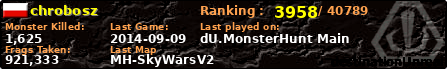 chrobosz | | PlayerID: | 16816 | | Overall MHT: | 921,333 | | Overall Deaths: | 54 | | Overall Suicides: | 0 | | Overall TeamKills: | 0 | | Overall Distance traveled: | 67km | | Overall Time Spend on Server: | 00days 06h 05m 50s | | Maps Played: | 18 | | Firstgame: | 2014-04-25 09:50:31 | | LastGame: | 2014-09-09 09:46:42 | | Player Ranking Place: | 3958 | | Used Playernames: | chrobosz PSIr