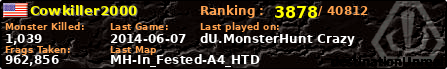 | Server | Map | LastGame | Score | Teamscore | Monsterleft | Deaths | Suicides | TKs | Distance | Playtime | |