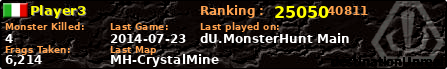 | Server | Map | LastGame | Score | Teamscore | Monsterleft | Deaths | Suicides | TKs | Distance | Playtime | |