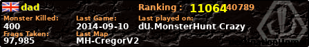 | Server | Map | LastGame | Score | Teamscore | Monsterleft | Deaths | Suicides | TKs | Distance | Playtime | |