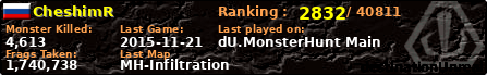 CheshimR | | PlayerID: | 17829 | | Overall MHT: | 1,740,738 | | Overall Deaths: | 433 | | Overall Suicides: | 2 | | Overall TeamKills: | 3 | | Overall Distance traveled: | 364km | | Overall Time Spend on Server: | 01days 00h 43m 09s | | Maps Played: | 63 | | Firstgame: | 2014-08-27 16:15:06 | | LastGame: | 2015-11-21 10:14:41 | | Player Ranking Place: | 2832 | | Used Playernames: | CheshimR