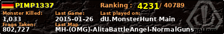 PIMP1337 | | PlayerID: | 17884 | | Overall MHT: | 802,727 | | Overall Deaths: | 106 | | Overall Suicides: | 0 | | Overall TeamKills: | 1 | | Overall Distance traveled: | 61km | | Overall Time Spend on Server: | 00days 05h 40m 17s | | Maps Played: | 22 | | Firstgame: | 2014-09-02 18:46:53 | | LastGame: | 2015-01-26 17:37:54 | | Player Ranking Place: | 4231 | | Used Playernames: | PIMP1337