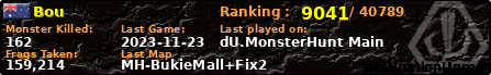 Bou | | PlayerID: | 17916 | | Overall MHT: | 159,214 | | Overall Deaths: | 51 | | Overall Suicides: | 0 | | Overall TeamKills: | 0 | | Overall Distance traveled: | 28km | | Overall Time Spend on Server: | 00days 02h 27m 41s | | Maps Played: | 19 | | Firstgame: | 2014-09-05 13:37:40 | | LastGame: | 2023-11-23 02:13:31 | | Player Ranking Place: | 9041 | | Used Playernames: | Bou