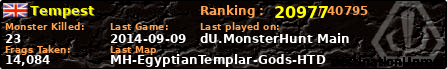 | Server | Map | LastGame | Score | Teamscore | Monsterleft | Deaths | Suicides | TKs | Distance | Playtime | |