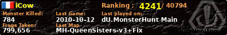 | Server | Map | LastGame | Score | Teamscore | Monsterleft | Deaths | Suicides | TKs | Distance | Playtime | |