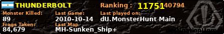| Server | Map | LastGame | Score | Teamscore | Monsterleft | Deaths | Suicides | TKs | Distance | Playtime | |