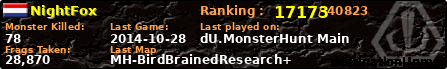 | Server | Map | LastGame | Score | Teamscore | Monsterleft | Deaths | Suicides | TKs | Distance | Playtime | |