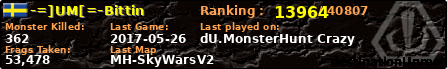 | MH-SkyWarsV2 | 2017-05-26 01:32:12 | 13,709 | 128274 | 1 | 4 | 0 | 0 | 3,19km | 00:50:39 | |