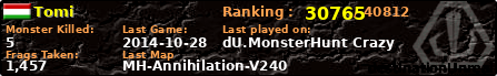 | Server | Map | LastGame | Score | Teamscore | Monsterleft | Deaths | Suicides | TKs | Distance | Playtime | |