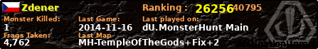 | Server | Map | LastGame | Score | Teamscore | Monsterleft | Deaths | Suicides | TKs | Distance | Playtime | |