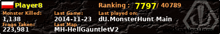 Player8 | | PlayerID: | 18750 | | Overall MHT: | 223,981 | | Overall Deaths: | 97 | | Overall Suicides: | 0 | | Overall TeamKills: | 1 | | Overall Distance traveled: | 84km | | Overall Time Spend on Server: | 00days 06h 16m 56s | | Maps Played: | 60 | | Firstgame: | 2014-11-16 16:31:42 | | LastGame: | 2014-11-23 16:25:13 | | Player Ranking Place: | 7797 | | Used Playernames: | Player8