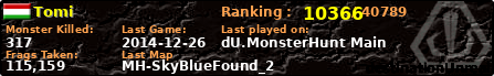 | Server | Map | LastGame | Score | Teamscore | Monsterleft | Deaths | Suicides | TKs | Distance | Playtime | |