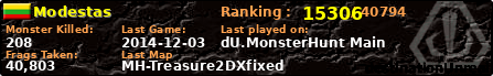 | Server | Map | LastGame | Score | Teamscore | Monsterleft | Deaths | Suicides | TKs | Distance | Playtime | |