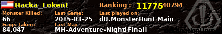 ![]() | MH-BackhomeReloaded+ | 2015-03-25 19:29:32 | 6,166 | 180573 | 1 | 0 | 0 | 0 | 0,63km | 00:46:11 |