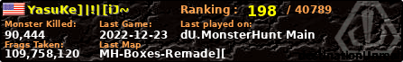YasuKe]|!|[iJ~ | | PlayerID: | 19508 | | Overall MHT: | 109,758,120 | | Overall Deaths: | 3308 | | Overall Suicides: | 374 | | Overall TeamKills: | 45 | | Overall Distance traveled: | 5,024km | | Overall Time Spend on Server: | 19days 04h 29m 13s | | Maps Played: | 1672 | | Firstgame: | 2015-01-17 16:59:10 | | LastGame: | 2022-12-23 01:50:32 | | Player Ranking Place: | 198 | | Used Playernames: | YasuKe]|!|[iJ~ kJ~ Big_K.R.I.T SupaFLy_SamuRa]|!|[~ YasuKe]|!|[J~ Karlos~ gibsplscmbackwasjoke Mahareshi ]|/EP|[~URAMESHI Yasuke]|[J~ Dino_Crispo S/~`//FORD GoodCowM.A.A.DFarmer GudCowM.A.A.DFarmers `KE]o[IJ~ `Ke]0[IJ~ `Ke]O[J~ BL/~CK `ke]|[J~ Ameru MI_NEGRO_PIRIPICHO El_negro_PIRIPICHO s//e/-]|[sO// s]|[8[-]//uGG|// Jenni_Lee Briana_Banks Mellanin Dr.Kreig Kung_Kong_K][ Kung_Pao_K][ //o_C|TY_Do// //o_C|][Y_Do// (-=S.u.C=-) Nabfest~ Mr_Random Karloska