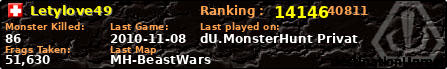 | Server | Map | LastGame | Score | Teamscore | Monsterleft | Deaths | Suicides | TKs | Distance | Playtime | |