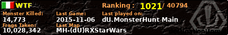 WTF | | PlayerID: | 19612 | | Overall MHT: | 10,028,342 | | Overall Deaths: | 505 | | Overall Suicides: | 9 | | Overall TeamKills: | 5 | | Overall Distance traveled: | 468km | | Overall Time Spend on Server: | 01days 10h 48m 16s | | Maps Played: | 135 | | Firstgame: | 2015-01-28 20:59:14 | | LastGame: | 2015-11-06 17:33:06 | | Player Ranking Place: | 1021 | | Used Playernames: | WTF XXX360NOSCOPEXXX Skydev Redeemer //CDonalds Notice!