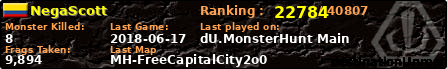 | Server | Map | LastGame | Score | Teamscore | Monsterleft | Deaths | Suicides | TKs | Distance | Playtime | |