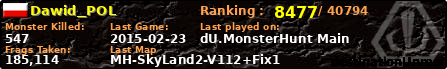 | Server | Map | LastGame | Score | Teamscore | Monsterleft | Deaths | Suicides | TKs | Distance | Playtime | |