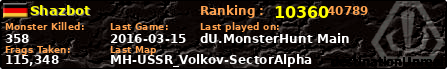 | Server | Map | LastGame | Score | Teamscore | Monsterleft | Deaths | Suicides | TKs | Distance | Playtime | |