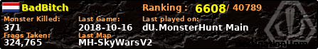 BadBitch | | PlayerID: | 20159 | | Overall MHT: | 324,765 | | Overall Deaths: | 135 | | Overall Suicides: | 1 | | Overall TeamKills: | 2 | | Overall Distance traveled: | 84km | | Overall Time Spend on Server: | 00days 07h 59m 49s | | Maps Played: | 45 | | Firstgame: | 2015-03-15 12:03:13 | | LastGame: | 2018-10-16 18:51:13 | | Player Ranking Place: | 6608 | | Used Playernames: | BadBitch bryan015 Joyy Blue_Bird Deem&Joyy