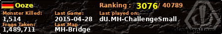 Ooze | | PlayerID: | 20362 | | Overall MHT: | 1,489,711 | | Overall Deaths: | 75 | | Overall Suicides: | 0 | | Overall TeamKills: | 1 | | Overall Distance traveled: | 105km | | Overall Time Spend on Server: | 00days 07h 58m 00s | | Maps Played: | 29 | | Firstgame: | 2015-04-06 12:36:09 | | LastGame: | 2015-04-28 19:47:10 | | Player Ranking Place: | 3076 | | Used Playernames: | Ooze