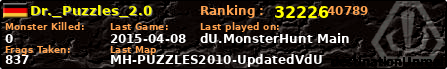 | Server | Map | LastGame | Score | Teamscore | Monsterleft | Deaths | Suicides | TKs | Distance | Playtime | |