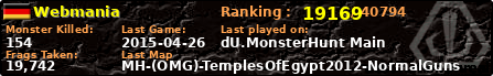| Server | Map | LastGame | Score | Teamscore | Monsterleft | Deaths | Suicides | TKs | Distance | Playtime | |