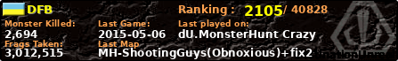 | Server | Map | LastGame | Score | Teamscore | Monsterleft | Deaths | Suicides | TKs | Distance | Playtime | |