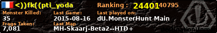 | Server | Map | LastGame | Score | Teamscore | Monsterleft | Deaths | Suicides | TKs | Distance | Playtime | |