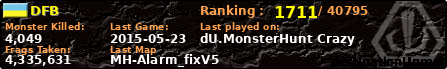 | Server | Map | LastGame | Score | Teamscore | Monsterleft | Deaths | Suicides | TKs | Distance | Playtime | |
