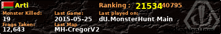 | Server | Map | LastGame | Score | Teamscore | Monsterleft | Deaths | Suicides | TKs | Distance | Playtime | |